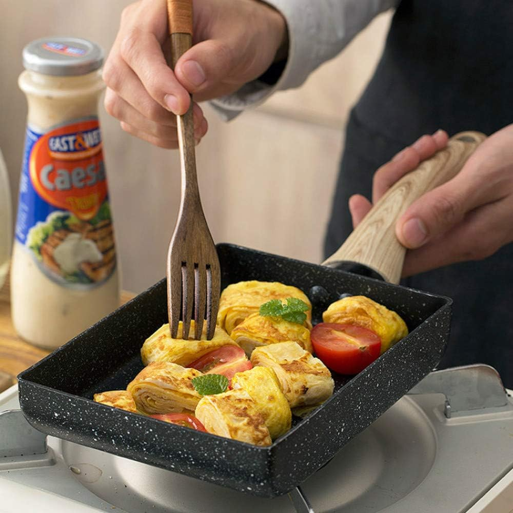 Design : Forme carrée idéale pour la cuisson des omelettes, œufs roulés et steaks