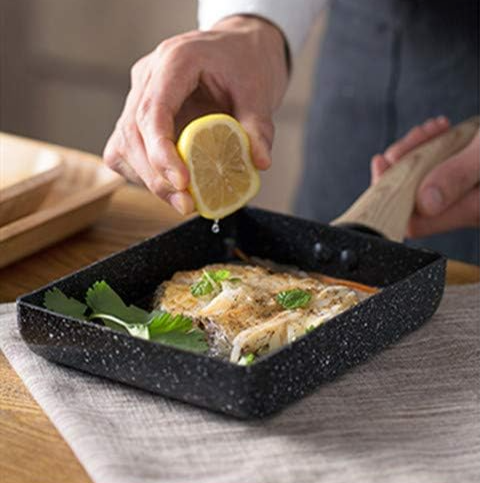 Avec sa forme carrée ingénieuse, vous bénéficiez d’une surface de cuisson plus large qu’une poêle traditionnelle. Vous préparez des omelettes épaisses, des rouleaux d’œufs ou des steaks sans effort, dans un confort absolu.